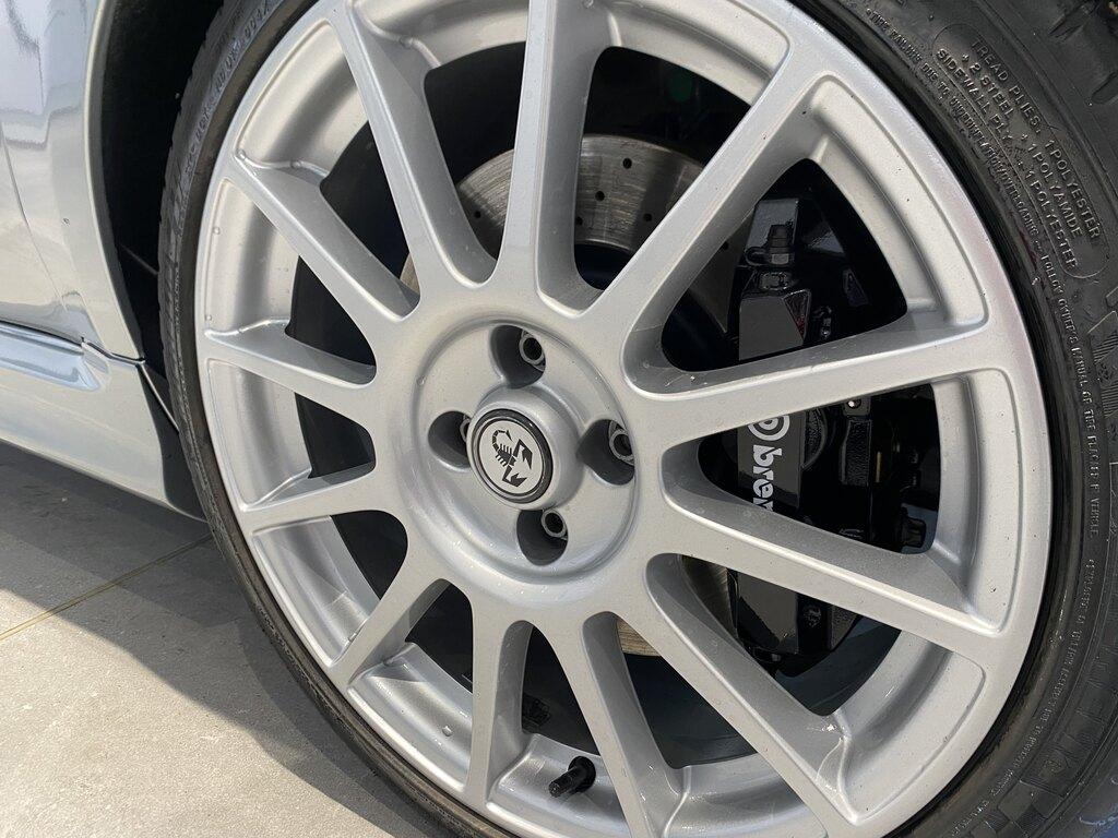 Scarico sportivo Akrapovič, l’impianto frenante Brembo, cerchi in lega da 17 pollici ad effetto grigio lucido, assetto della Koni.
